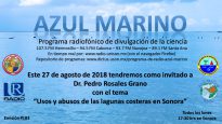 Collection Programa de Radio Azul Marino Item Usos y abusos de las lagunas costeras en Sonora Documento 183 Descargar Información: Thumbnail # emisión183TemaUsos y abusos de las lagunas costeras en SonoraDescripciónLos invitamos a escuchar Azul Marino a las 5:30 pm. Por Radio Universidad Saludos cordiales. Dr. José Manuel Grijalva Chon. Dr. Alf Enrique Meling López. Equipo de Producción y Conducción de Azul Marino.InvitadosDr. Pedro Rosales GranoFecha27 agosto, 2018Audio Continuar navegando... La Unidad Experimental Kino del DICTUS Aprovechamiento de platas nativas Back to items list